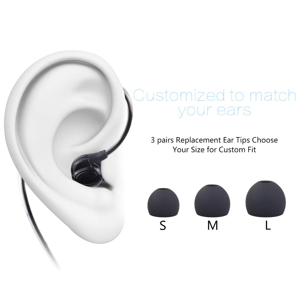 【完璧にフィット】人間工学に基づいたデザインで、(S/M/L)三種類のイヤチップ付きで、耳かけ式のカナル型イヤホン、運動中でも落ちにくく設計されています、お客様の耳にしっかりフィットします。(Mサイズのイヤチップは既に装着しています)