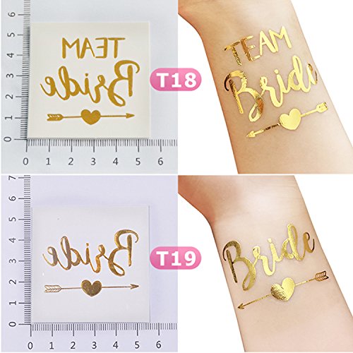 12-Pack Bride & Team Bride Temporary Tattoos, Bachelorette Party Supplies and Accessories Favours, Metallic Shiny Gold (T18, T19)