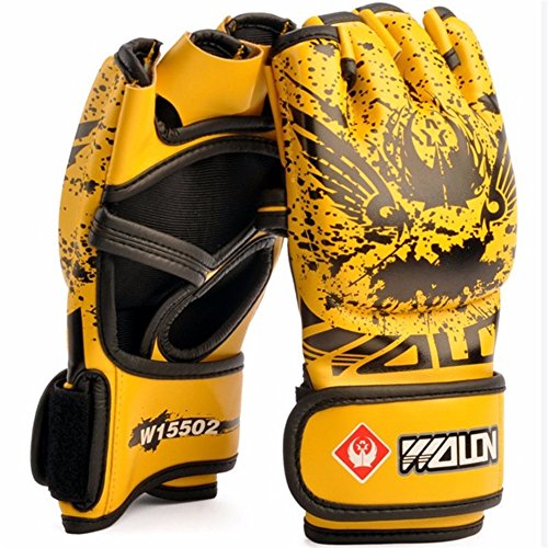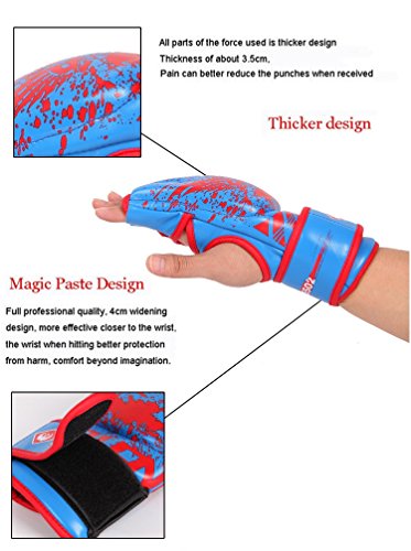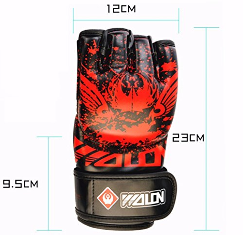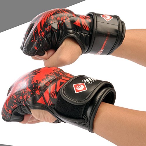 Studio : Kagogo Publisher : Kagogo Binding : Misc. Product Description Kagogo Half Finger Taekwondo Training Boxing Gloves Grappling UFC Sparring Fight Punch Ultimate Sandbag Heavy Bag Mitts Sports Fitness Exercise Equipment for Adult Men Women Three layers of protection: First: High Rebound EV. Second: Buffer Sponge. Third: High foaming PE. Helps prevent injury and improves comfort. Adopting high-class PU leather and high quality thread stitching, it is tough enough and durable for long-term use. Constructed with an ergonomically-improved pre-curve design. It keeps your thumb in an ergonomically correct position. Helps prevent injury and improves comfort. Special design improves comfort and safety. Specifications: Material: High-quality PU leather Dimensions: 7.87 x 4.72 Inch (L x W) Weight: 220 g / 7.76 oz Note: Do not bleach and iron it. Keep away from direct sunlight. Do not tumble dry. Package includes: 1 Pair of Boxing Gloves 0