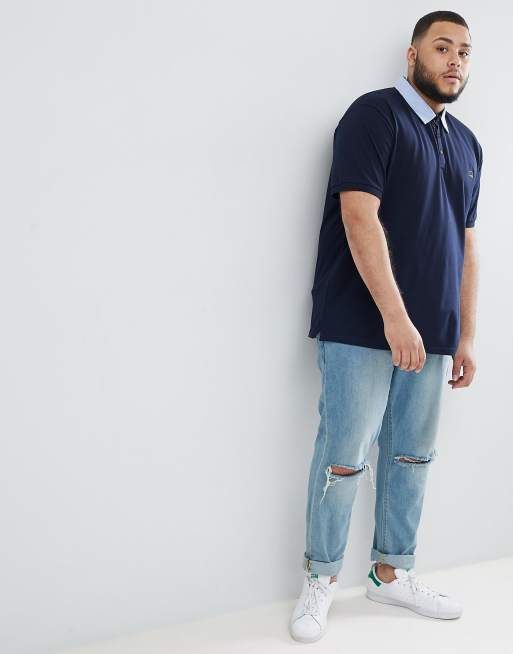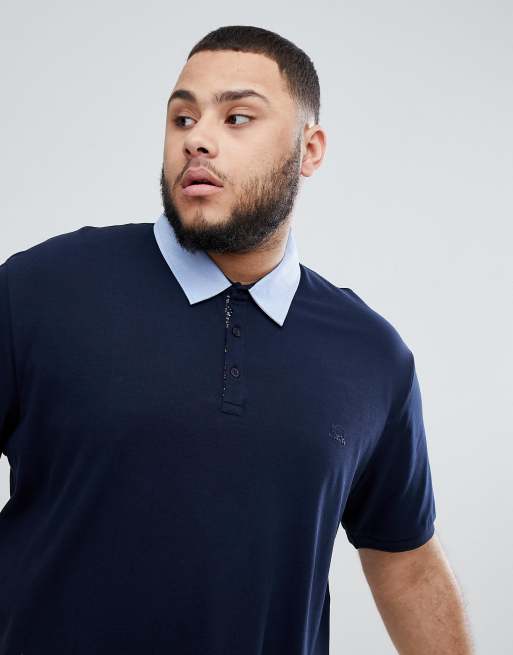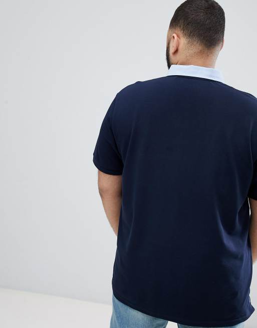 BadRhino Plus Polo Shirt with Contrast Collar In Navy