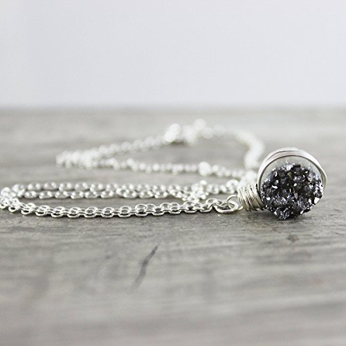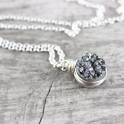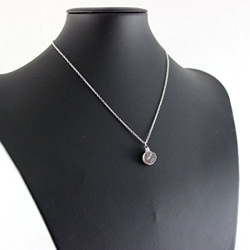 This tiny and understated necklace features a small silver druzy quartz circle bead that hangs from delicate and lightweight sterling silver cable chain. It has been finished with a spring clasp. The bead measures a very tiny 10mm.