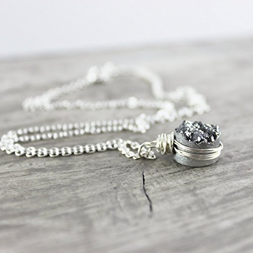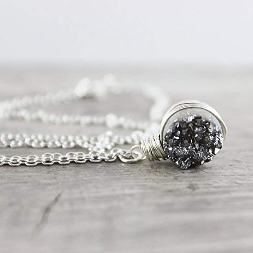 DRUZY QUARTZ STERLING SILVER CIRCLE NECKLACE - 18" LENGTH