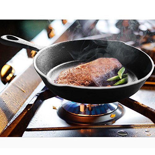 Multi-functional: This 8" cast iron skillet is perfect for smaller portions of any entree,or can be used on its own as a serving piece.Use this cast iron skillet when heating up fajitas,bacon,eggs,and even steak.It is great for indoor use,in the oven,on the stove,or outdoor on a campfire.Pre-Seasoned and ready-to-use.