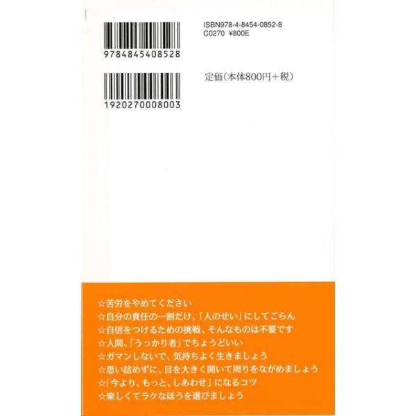 【商品説明】 定価(税込み):864円 値引き:5% OFF 人生、いいことしか起きないようになっているんです。だから、もうクヨクヨしない、ジタバタしない! 苦労をやめてください。そして、「今、ここ」でしあわせになってください。あなたが「今、しあわせ」といった瞬間、 天空はるか彼方にある宇宙から、ハッピーラッキー☆エネルギーが、あなたのほうへ一気になだれ込みます。 バーゲンブック 新品 特価 格安 生活の知恵 生き方 名言 生活 知恵 エネルギー | |