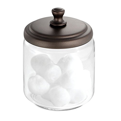 InterDesign York Bathroom Vanity Glass Apothecary Jar for Cotton Balls, Swabs, Cosmetic Pads - Short, Clear/Bronze B00BNUXNHS