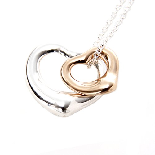 TIFFANY 18KRG Rose Gold Sterling Silver Elsa Peretti Double Open Heart pendant necklace 41cm 23261057