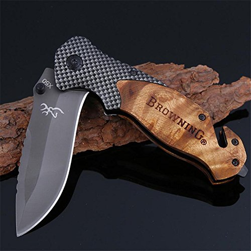 Browning knives X50 Tactical Folding Knives, Wood +Carbon fiber Handle Blade 440C 57HRC Camping Survival knife Pocket folding Knife