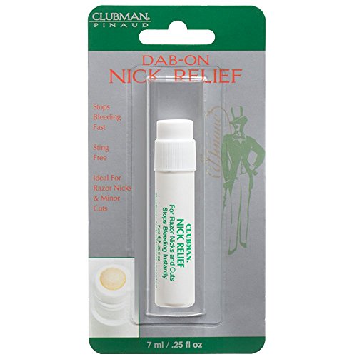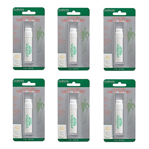 Package of 6 BB-812650 CLUBMAN PINAUD Dab-On Nick Relief BB-812650 CLUBMAN PINAUD Dab-On Nick Relief is designed to stop bleeding caused by minor surface cuts and abrasions. It's the perfect way to prevent the penetration of dirt and germs beneath the skin which can lead to infection.FEATURES: - CLUBMAN PINAUD Dab-On Nick Relief