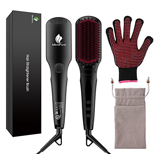 -. Feature : DOUBLE IONIC GENERATOR FOR HEALTHY SILKY HAIR: gives your hair a smooth, silky, natural lustrous look by sealing the hair cuticles- reducing frizziness, split ends, and knotting. It gives you natural healthy silky looks rather than flat burnt look and leaves your hair easy to manage. / HIGH DENSITY OF NANO COMB BRUSH FOR CURLY HAIR: Work between 110V-220V,Make it way easier for curly hair, Straight and frizz-free hair in just several minutes, also provides a massaging effect that benefits the scalp and simulates hair follicles. / TAME THE WILDEST LOCKS WITH FIVE DIFFERENT HEAT SETTINGS: MiroPure Straightener has been described as a secret weapon in the quest for dream hair. Your Miropure can be adjusted to five different settings from 150℃/302℉ to 230℃/446℉. Suitable for all hair types: thin, fine, bleached, wavy or curled. / IF YOU'RE STILL USING A PTC HAIR STRAIGHTENER - YOU'RE MISSING OUT. MTC is the new heating standard for hair appliance. What does this mean for you? Heat Quickly, Most Evenly in less than one minute, Save Energy, More Durable, Lasts Longer, significantly reduces overall straightening, hair styling time compared to conventional hair straighteners. / TEMPRETURE LOCK AND AUTO SHUT OFF FUNCTION FOR SECURITY: temperature lock function can avoid temperature changing intentionally when doing hair styles, even more secure with auto shut off function. you're protected by a 360 day, no-questions asked money back guarantee and world class personal customer service!