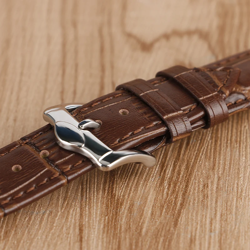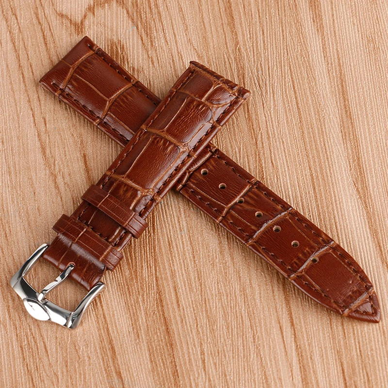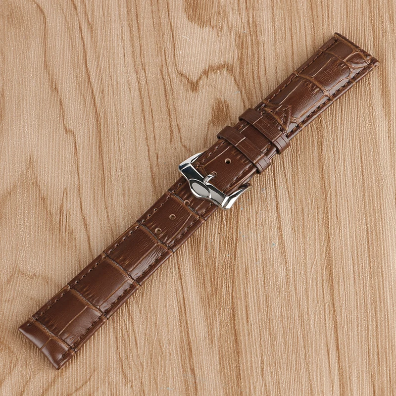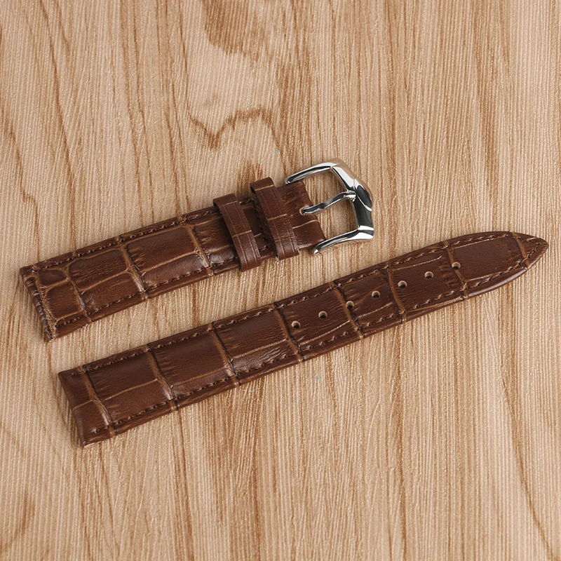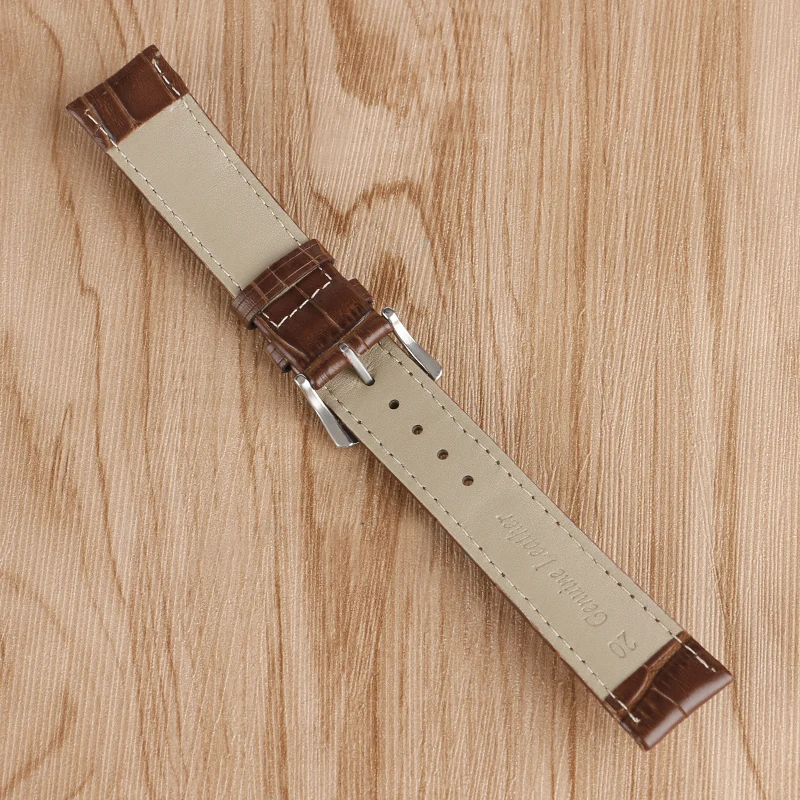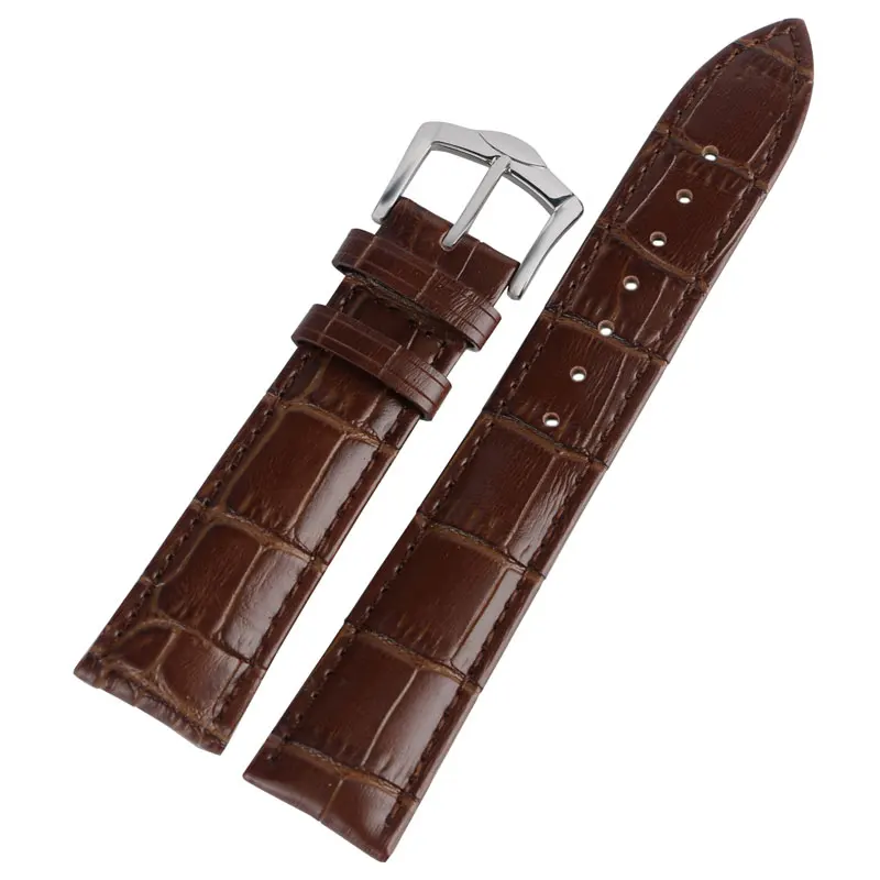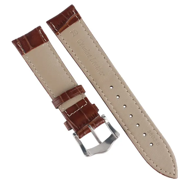 | [해외]브라운 정품 가죽 부드러운 고품질 + 2 봄 바 스테인레스 스틸 핀 버클 팔찌 시계 스트랩 밴드 손목 |