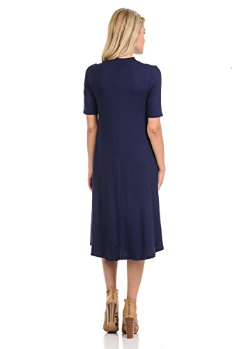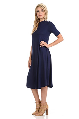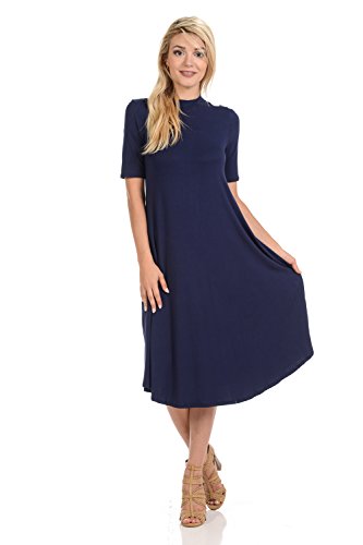 This lovely dress features half sleeves, mock neckline, midi length and figure flattering A-line silhouette. It is made of soft jersey knit that has great drape.