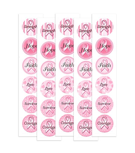 Pink Ribbon Breast Cancer Hope Stickers 50 Pack