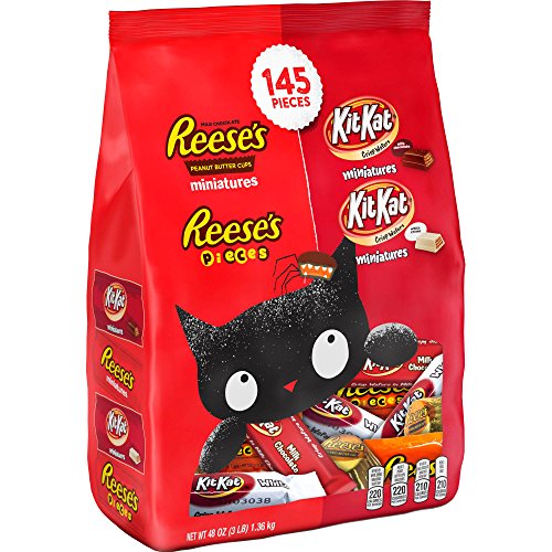 -. Feature : One 48 oz bag of Hershey's Halloween Candy Assortment, 145 Count / This Kit Kat & Reese's assortment bag includes: Milk Chocolate and White Creme Flavored Kit Kat Miniatures, Reese's Peanut Butter Cups Miniatures and Reese's Pieces Candy / Individually wrapped chocolate and peanut butter candies are perfect for trick-or-treaters, candy bowls and Halloween parties / Put the treat in "Trick or treat!" by handing out Hershey's Halloween Candy Assortment this Halloween.