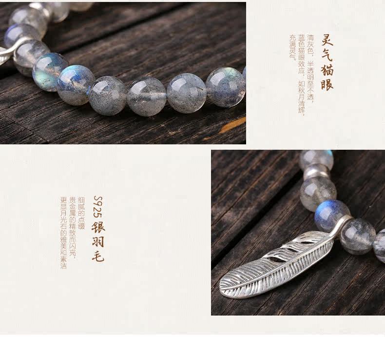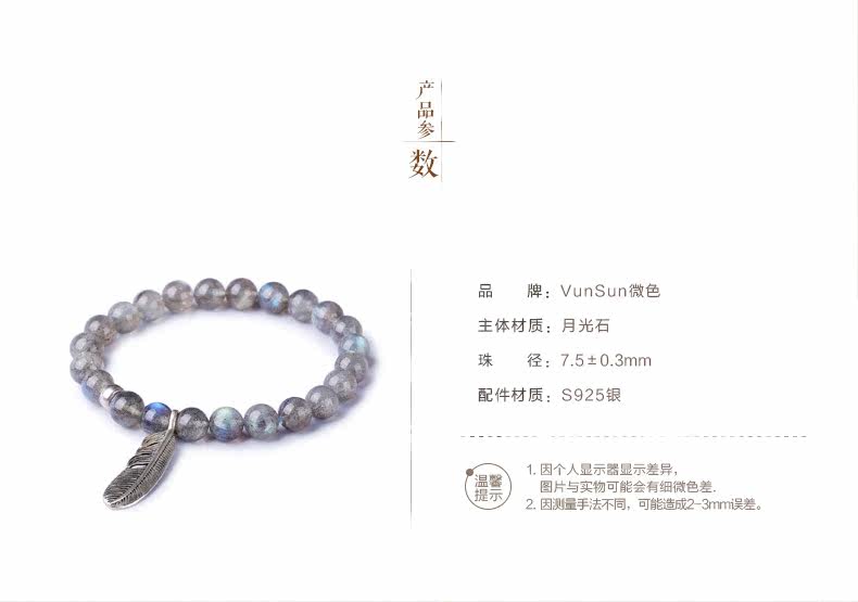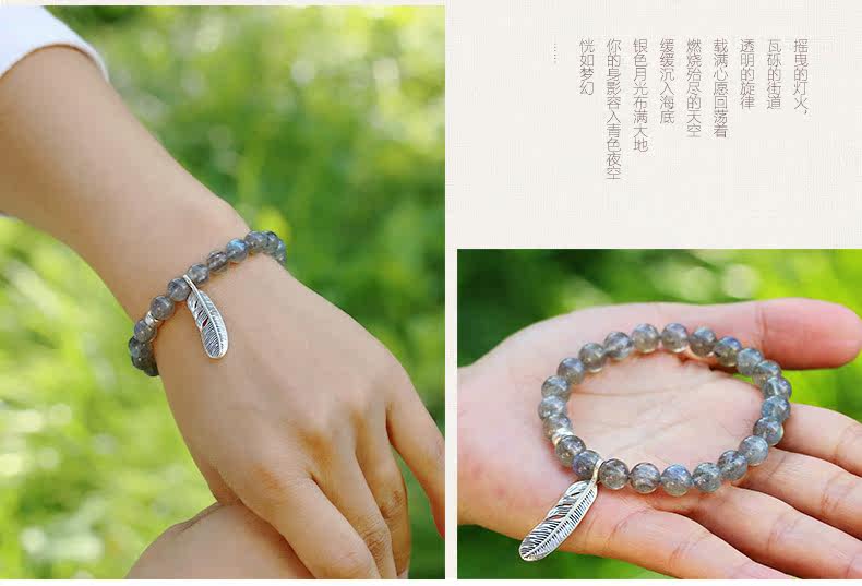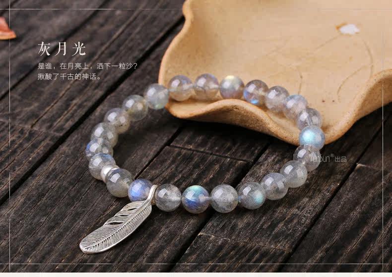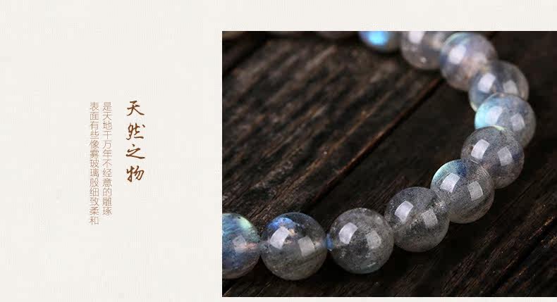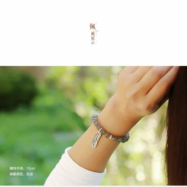 天然水晶灰月光石手链女款 单圈拉长石手串女 简约文艺饰品