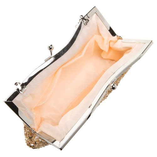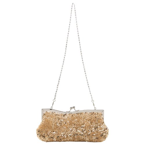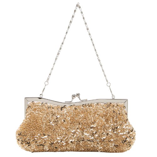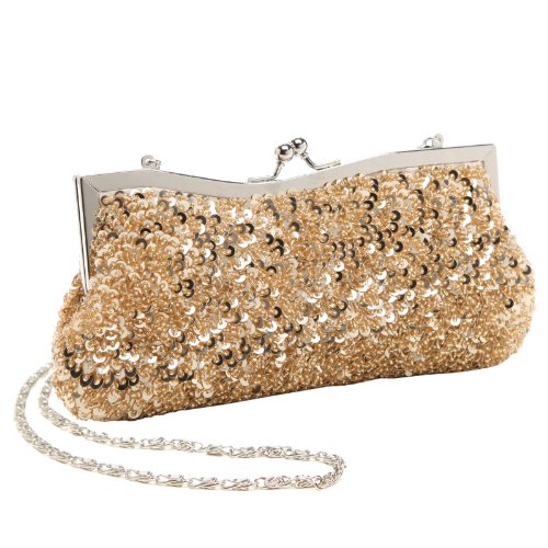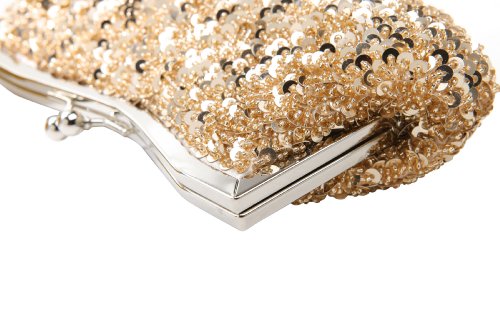- Feature : A dazzling evening bag covered in sparkling champagne-colored sequins and accented with silver-tone hardware. / The roomy and luxuriously lined interior comes with a small pocket and is the perfect size for stashing keys, ID, lipstick, tissues, and other essentials. / Carry this evening bag as a clutch, or use either the long or short chain strap to slip this mini bag onto an arm. / Ideal for any special occasions or a night out. Great gift idea for wedding, anniversary, valentine's day, or Christmas / Approximate Dimensions: Exterior - 4.6" H X 9" W X 1.2" D; Interior - 4" H X 8" W X 1" D; Short Chain - 7.2" drop; Long Chain - 23" drop; Interior Pocket - 4" W X 3" H.