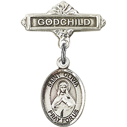 -. Title : Sterling Silver Baby Badge with St. Olivia Charm and Godchild Badge Pin 1 X 5/8 inches