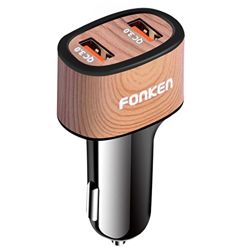 -. Title : Quick Charge 3.0, 36W Dual USB Car Charger, Fonken Wood Grain Rapid Charging Adapter with Smart IC