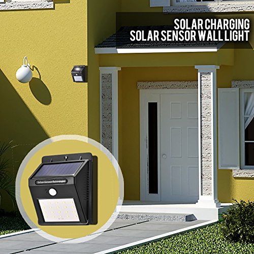 - ✔️ ULTRA BRIGHT:LURICO outdoor Wall Lights have 20 x high efficient LED bulbs (lifespan > 50,000hrs),400 lumens make the solar powered security light super bright.It is bright enough to turn the dark space into bright lighted space and provide security for your daily life