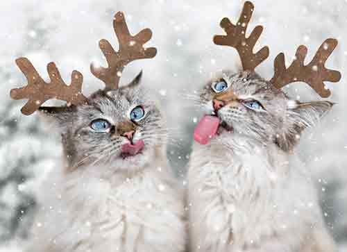 Avanti Press Avanti 10-Count Christmas Cards, Reindeer Cats Catching Snowflakes (701732)
