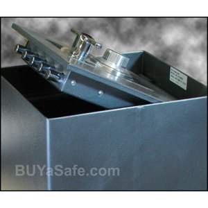 -. Feature : LaGard group II combination Lock. SP.R.Ing loaded relocker device. / 1/2" A36 solid steel door. Body anchor base plate. / Masive sP.R.Ing gloss black hinge. Sturdy steel cover. / 5 x 3/4" dia. chrome-plated locking bolts. Drill resistant carburizred hardplate. / Full length dead bar to prevent entry into safe by removing hinges. Powder coat finish
