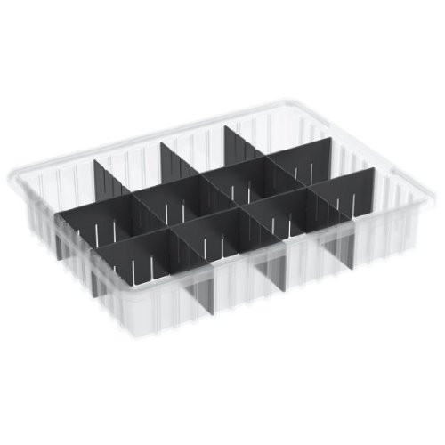 Akro-Mils 33168 16-1/2-InchL by 10-7/8-Inch W by 8-Inch H Akro-Grid Slotted Divider Plastic Tote Box, Clear, 6-Pack