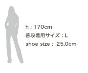 | モデル | 身長:153cm 洋服のサイズ:S~M(7~9号) 足のサイズ:23.0cm モデル着用サイズ:M |