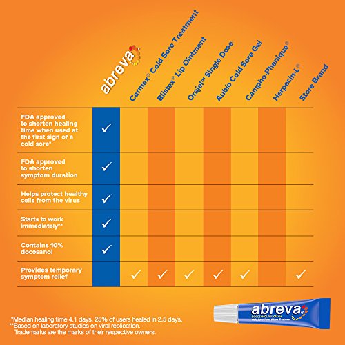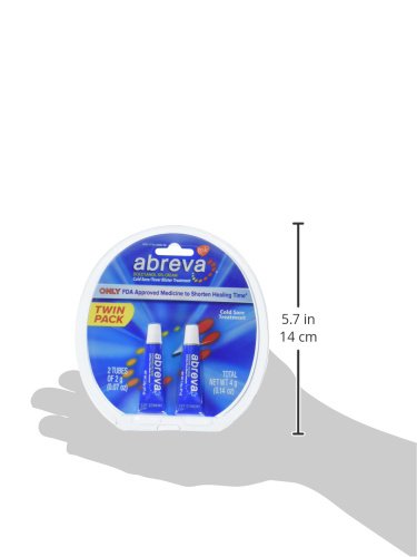 ReleaseDate : 2017-06-01 Studio : GlaxoSmithKline Publisher : GlaxoSmithKline Binding : Health and Beauty Product Description Abreva Cream is the only nonprescription cold sore medicine approved by the FDA to shorten healing time. While other products just soothe, Abreva works quickly by penetrating deep into the skin to the source of the spreading virus. Abreva comes in a tube or pump, and uses the same formula for each. Each tube contains 2 grams of cream and is conveniently available in a Twin Pack. 0