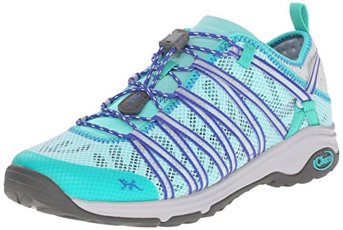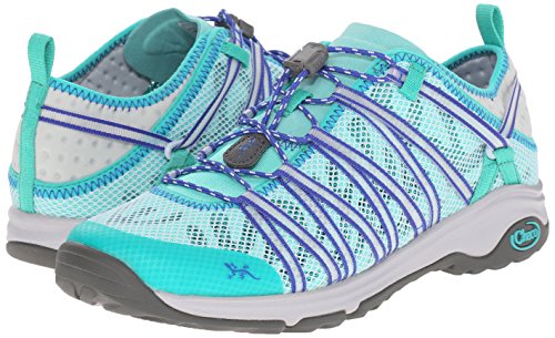 Coral-inspired breathable mesh upper with film toe cap for durability and protection and lycra neoprene collapsible heel