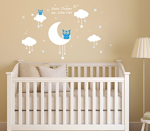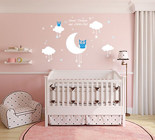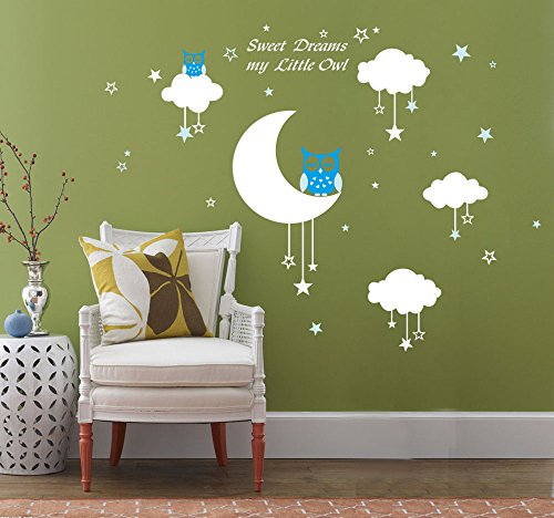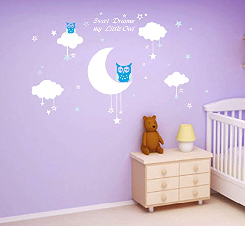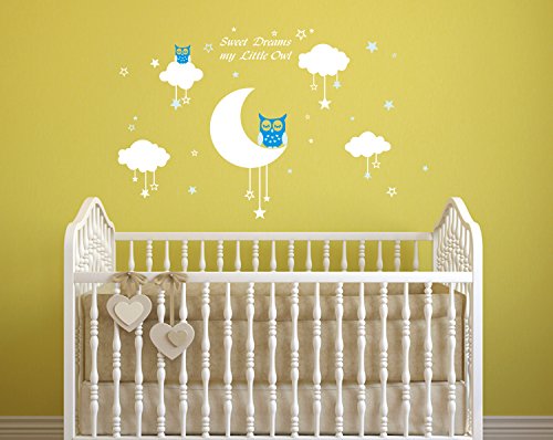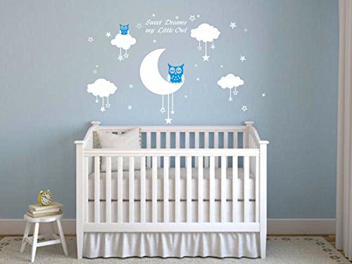 LUCKKYY Sweet Dreams My Little Owl Wall Decal Vinyl Wall Sticker Baby Nursery Decor Kids Room Wall Stickers (Blue+white)
