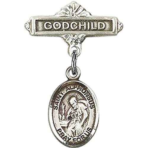 -. Title : Sterling Silver Baby Badge with St. Alphonsus Charm and Godchild Badge Pin 1 X 5/8 inches