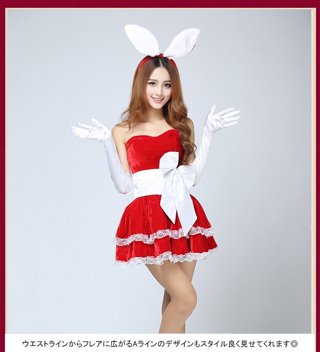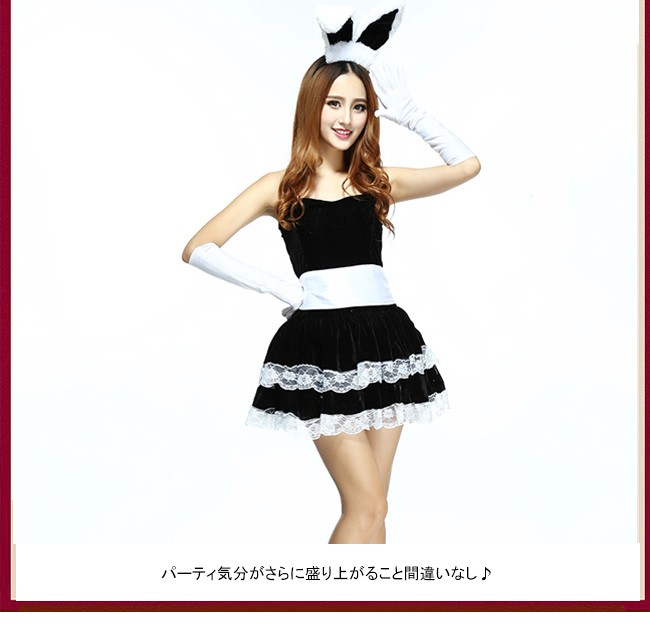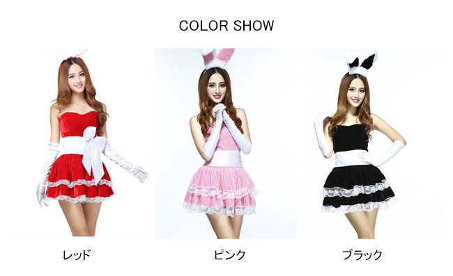 | サイズ | サイズ(cm):ワンピース(着丈54 バスト74-88 ウェスト60-74)+ウサミミ+ベルト+手袋 |