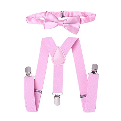 TiaoBug Unisex Kids Boys Girls Adjustable Suspender Bow Tie Set