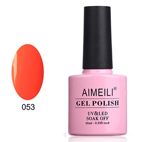 -. Binding : Health and Beauty -. Brand : AIMEILI -. EAN : 0701851249388 -. Feature : 14-day high-gloss wear , On like polish, Wears like Gel, Off in minutes / Mirror shine finish. No Nicks, Chips or Smudges / Requires drying under UV or LED Lamp / Please note: Due to the lighting and screen setting, color may vary slightly from the picture. -. Label : AIMEILI -. Manufacturer : AIMEILI -. MPN : 053 -. PackageQuantity : 1 -. PartNumber : 053 -. ProductGroup : Beauty -. ProductTypeName : BEAUTY -. Publisher : AIMEILI -. Studio : AIMEILI -. Title : AIMEILI Soak Off UV LED Gel Nail Polish - Neon Orange Zest (053) 10ml -. UPC : 701851249388