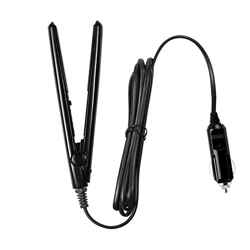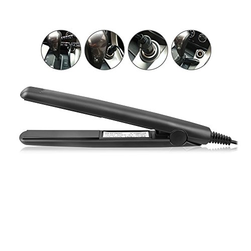 CNV Portable Convenience Mini Car Charger Ceramic Hair Straightener Flat Iron mini travel hair straightener (Black)