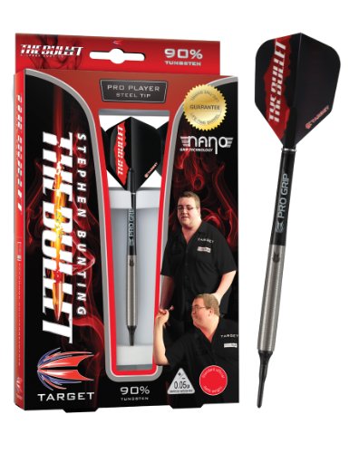 Target 14g, 90% SoftipTungsten darts, complete with Italian Tips , Pro Grip shafts and Target 100 micron flights. Stephen "The Bullet" Bunting ,is an instantly recognisable figure on the BDO darts circuit.He is the BDO & WDF ranked No 1 In the world, winner of the World Masters 2012,England Open 2013,Mariflex open 2013, & England Masters 2013 are among Stephens recent major wins. These Pro Player darts are produced to a proffesional standard and each dart is laser engraved with the "Target " logo.These darts are endorsed by Target profesional darts player Stephen Bunting, and bear Target's unique lifetime barrel guarantee.
