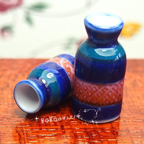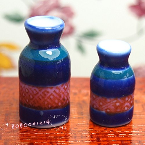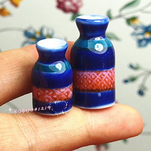 -. Title : Bobominiworld 2 Porcelain Striped Flower Pattern Vase Dollhouse Miniatures Decoration 1:12 Scale Height 2.9cm Blue