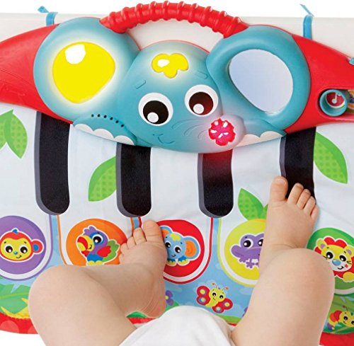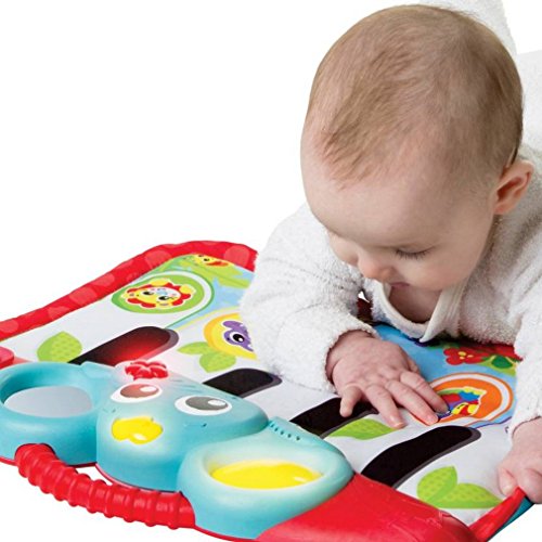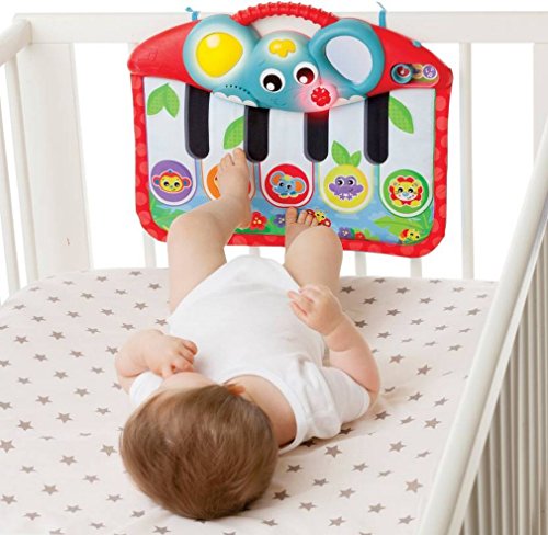 This Playgro Music and Lights Piano and Kick Pad is a versatile musical toy that can be used as a piano or as a crib kick pad! Any baby will love grooving to the beat of music composed privately for Playgro, while watching as the lights stimulate their visual senses. This adorable toy straps easily to a crib or can be used for floor play fun! This toy is the perfect gift for any musically inclined young one!
