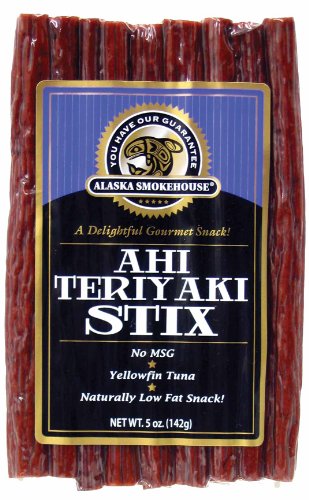 Studio : World Wide Gourmet Foods Publisher : World Wide Gourmet Foods Binding : Misc. Product Description Alaska Smokehouse Ahi Teriyaki Stix deliver a wonderful "on-the-go meal" or snack whether you are working, hiking, fishing, biking, or hunting. Now you have a chance to experience our all natural Ahi Teriyaki Stix directly from the crystal-clear waters. Taste the energy in this healthy high-protein wild ahi tuna snack food. Our Ahi Teriyaki Stix are made from 100% wild ahi tuna and teriyaki, still being loaded with the all-important Omega-3 fatty acids. Containing no MSG, this snack provides a healthy alternative when you are on the go. Ahi Teriyaki Stix make a quick and healthy snack for you and your family; carry them in the car as you go on trips to avoid fast food. Pack for success and take these wonderful Teriyaki Stix on your next adventure. Wild Ahi will give you the energy you need for your busy on-the-go lifestyle. These Stix also make great alternative snacks when you sit back to watch a ball game and if you're on a protein diet, what better snack than Alaska Smokehouse Ahi Teriyaki Stix! 0