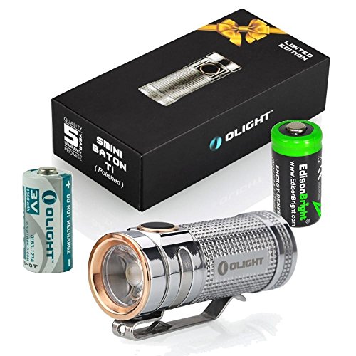 Bundled with an additional EdisonBright CR123A lithium backup battery.