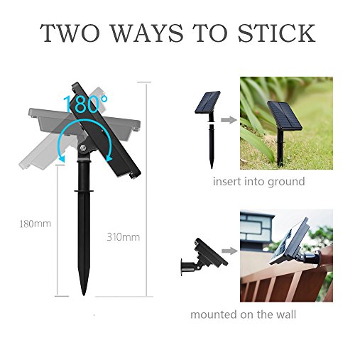 Hassle-free Multi-function Operation Easy to plug into earth with the solid stake of solar string lights, or mounted to a wall using the expansion bolts. No additional power is required, 220 LED string lights add a charming atmosphere to your surrounding environment. It is perfect for decorating and lighting in your garden, courtyard, patio, lawn, corridor, fence, windows or outdoor celebration decoration, such as Xmas, wedding, camp, party, festival, etc.