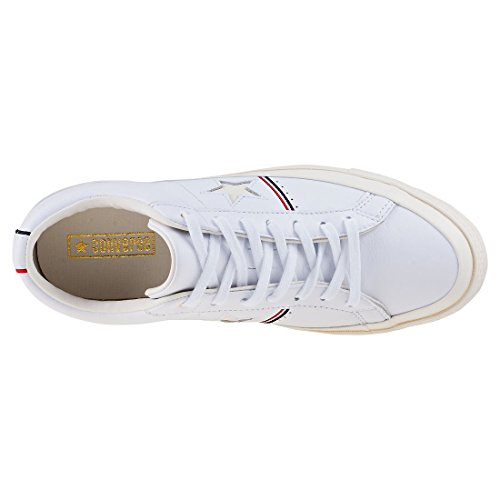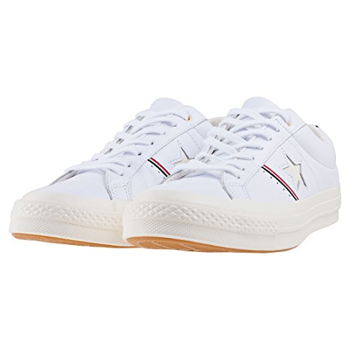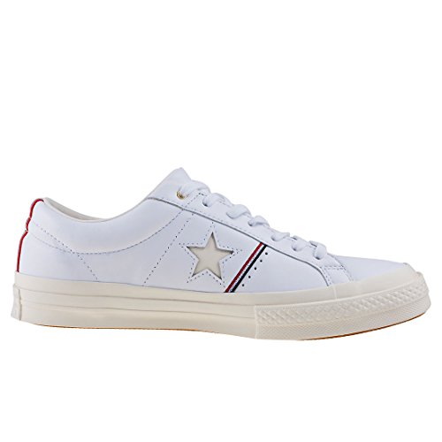 Binding : Apparel Product Description The Unisex One Star Ox from Converse combines a Leather upper with a durable Rubber sole. These Trainers feature Lace-up fastening, cushioned insole and Textile lining. Finished with Converse branding, the style 159694C comes in a White colourway. 0