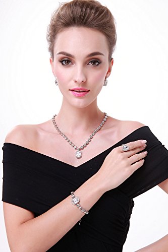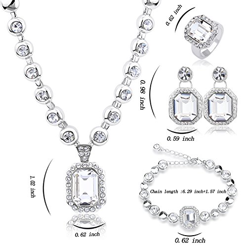 - Feature : ★The jewelry set includes 4 pieces, one necklace, one bracelet, one pair of earrings, one ring / ★SPECIFICATION: 18" with a 2" extender NECKLACE, 7" with a 1" extender BRACELET and 1" drop pendant easy to clasp. RING diameter: 1.1 inch Size 7 / ★DESIGN: The necklace chain has six crystal up each side, then metal the rest of the way up / ★The pieces are weighty and substantial, which would be highly recommend to anyone who needs a little extra bling for a special occasion. Romantic and feminine jewelry adds a glamorous sparkle to your evening gown / ★It would add a timeless essential for women's jewelry box and be an ideal gift for someone special, such as lover, girlfriend,friends, mother, wife...