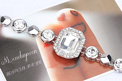 - Title : "River Rhine" Mondaynoon SWAROVSKI ELEMENTS Crystal Strand Necklace Bracelet Earrings Rings 4 in 1 Jewelry Set 18" for Valentine's Day Gift (White)