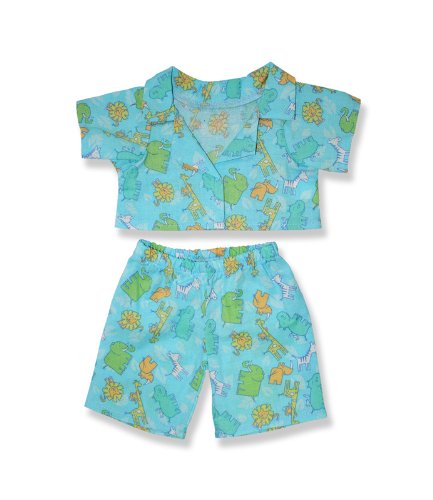 -. Feature : Blue teddy bear pajamas / animal P.R.Int pattern / Elephants, giraffe, zebra and lion / 2 piece outfit / fits 15 inch plush