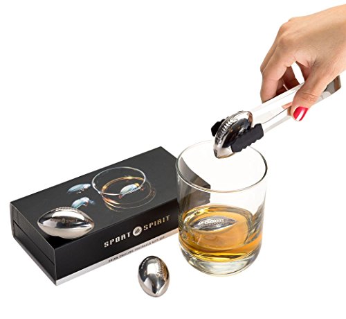 -. Feature : GREAT ALCOHOL DOESN'T DESERVE TO BE RUINED Some like their spirits neat, others like them on the rocks. So long as it's a premium alcohol, temperature is really just a matter of preference. That being said, diluting your perfectly crafted drink with ice cubes is both avoidable and a bit of a faux pas. There's no reason you have to sacrifice taste for a refreshing cold drink. With the Sport and Spirit silver rocks collection, you can keep your drink cold without watering it down. / ICE IS A POOR CHOICE: Ice is great at chilling your beverage but using it also means compromising the taste. Watered down drinks jeopardize flavors and notes of the spirit you're consuming. Because ice melts so quickly, it has to be refilled which can be a pain in the butt. With our football whiskey ice cubes, they retain their cold and won't interfere with the taste. No more worrying about refilling ice trays or empty ice makers. These whiskey stones are convenience at your fingertips. / ADD SOME FUN TO ANY DRINK: Just like cosmopolitans get lemon twists and Old Fashions get orange rings and margaritas get salt rims, you can actually fancy up your basic, "unfancy" drink. Our premium whiskey rocks with tongs aren't your ordinary whiskey stones. Their sleek, silver surface and unique football design will add a touch of class, luxury, and fun to any drink. You will feel like you're having a martini with 007 himself when you add these stainless steel cubes for drinks. / A HEALTHIER OPTION: Ice cubes are great for filling up coolers or keeping food on ice, but it isn't the best option to put directly in your beverage. Why? Mostly because it's unsanitary. Think of all the hands that grab for ice throughout the day, particularly when you have a lot of people over. Those same ice cubes that have been touched by multiple, unclean hands often end up in your scotch. Not only does that put you more at risk of getting sick, it also can ruin the taste of the drink. / FAKE IT TIL YOU MAKE IT: Everyone wants to be the next 007 or someone from the Rat Pack that just screams class, taste, and luxury. There's something sexy about a man that knows what he likes. He's the guy at the bar sipping on a Johnny Walker Blue without a care in the world. That's the kind of visual our reusable ice cubes for scotch and liquor bring to the table. Like an aged bourbon-barrel scotch, people that drink with our stones are confident, smooth, with just a little bit of bite.