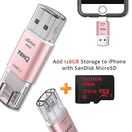 -. Title : [Apple MFI Certified] TEKQ Mini uDrive microSD Reader To Lightning with 128G SanDisk Ultra microSD Card 80MB/s, USB 3.0 Flash Drive for iPhone, iPad, iPod, Mac and Windows PC.(RoseGold)
