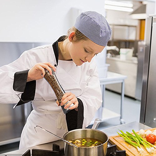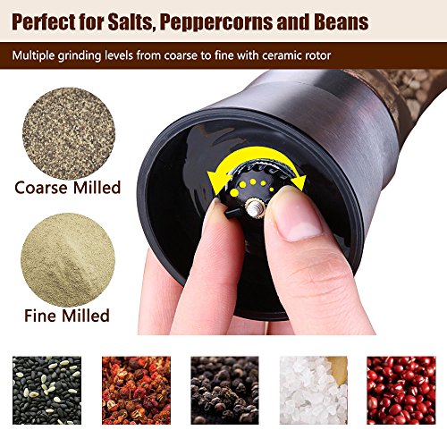 ✔PREFECT FOR MOST OF SPICES AND OCCASIONS. Due to the powerful pepper grinder with multiple grinding level freshly ground function, it can be used to grind sea salt, peppercorns, adzuki beans, mung beans, coix seed and so on. Besides, it is a great assistant for BBQ, fried food and turkey feast.