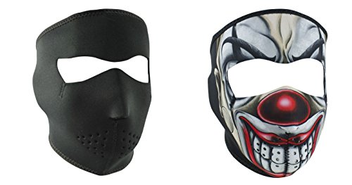 -. Feature : This Product is a 'Bundle' of 2 Neoprene Face Mask Items identified as a 'Solid Black' and a 'Scary Chicano Clown' / The First Facemask Item is the ZanHeadgear 'Solid Black', Oversized, Full Face Neoprene Face Masks / The Second Facemask Item is the ZanHeadgear 'Scary Chicano Clown' Full Face Neoprene Face Masks / Face Masks / Ski Mask Items are made of Durable, Naturally Warm & Water Resistant Neoprene Face Mask Material / Face Mask Sizes are adjustable, by up to 2 inches, using the Hook & Loop closure, located at the back of the head