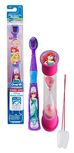 -. Feature : Crest + Oral-B Pro-Health Stages helps kids learn to brush their best with products designed to support healthy oral hygiene. Even better, they are compatible with the Disney MagicTimer App by Oral-B that will help your child brush longer. So get Crest + Oral-B Pro-Health Stages and help your kids learn proper oral care habits to last them a lifetime. / (1) Disney P.R.Incess "Ariel" Soft Manual Toothbrush / (1) 2 Minute Ariel Teeth Brushing Timer! (Assorted Colors) / Plus Bonus "Remember to Brush" Visual Aid Tooth Saver Necklace. Hang it in their bathroom or by their bed so they remember to keep their chompers sparkly fresh. You could also use these tooth charms to save one of your child's baby teeth.