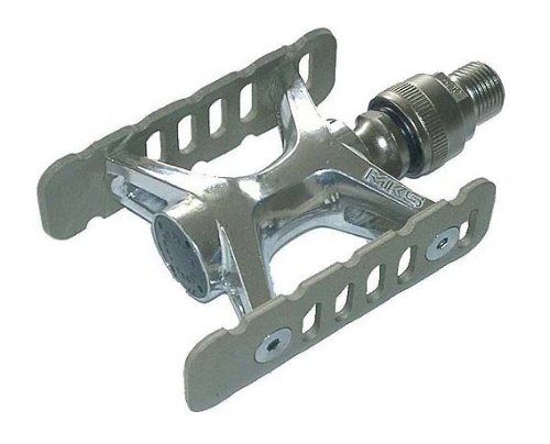 Studio : MKS Publisher : MKS Binding : Sports Product Description MKS EZY Quick Release Pedals feature a permanent coupler that mounts in a crank arm, allowing quick release of pedal. *Coupler stays in crank, 19mm protrusion, and pedal detaches like an air hose fitting *Intended for tight storage spaces and folding bikes *Includes coupler *Body dimensions: 85 x 64mm. Item Specifications; Color:Silver; Weight:352g; Intended Use:Road; Material:Aluminum; Pedal Spindle:9/16'; Spindle Material:Chromoly; Pedal Type:Platform; 0